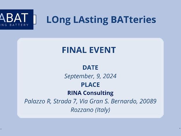 The final event of the EU-funded LOLABAT project, which focuses on developing a new generation of powerful, rechargeable nickel-zinc batteries, will be held on September 9, 2024, at 9:00 AM at RINA Consulting in Milan (Palazzo R, Strada 7, Via Gran S. Bernardo, 20089 Rozzano).